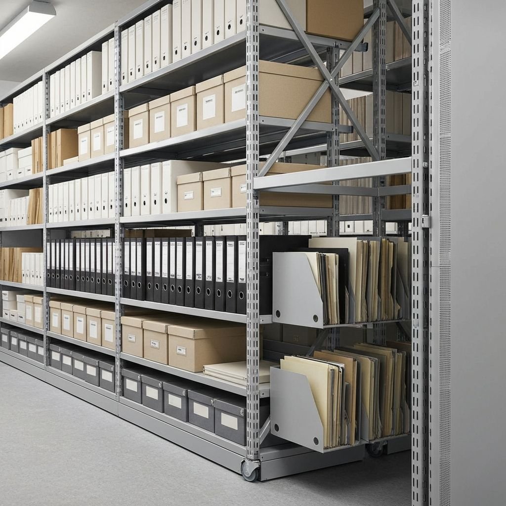 Haute densité pour archives et bibliothèques. Économise jusqu'à 80% d'espace.